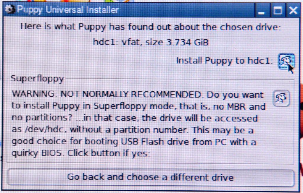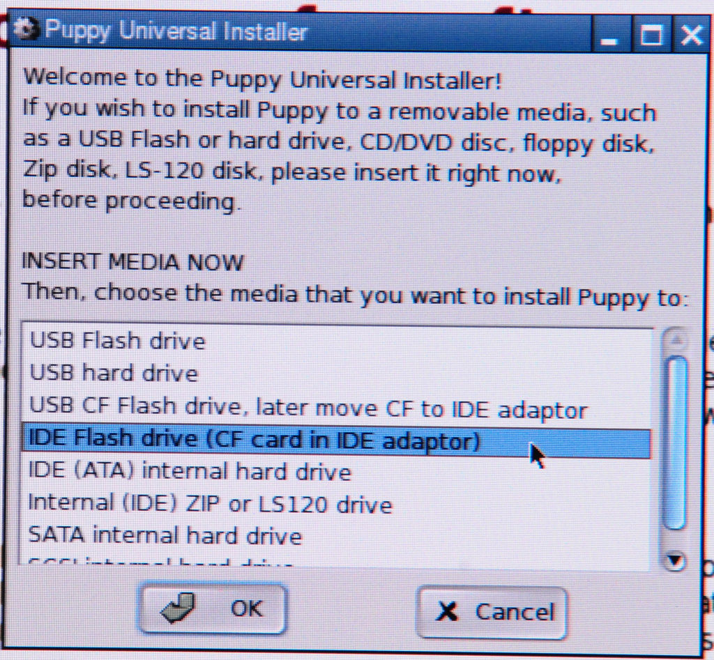 The next problem is installing Puppy on the CF card.
