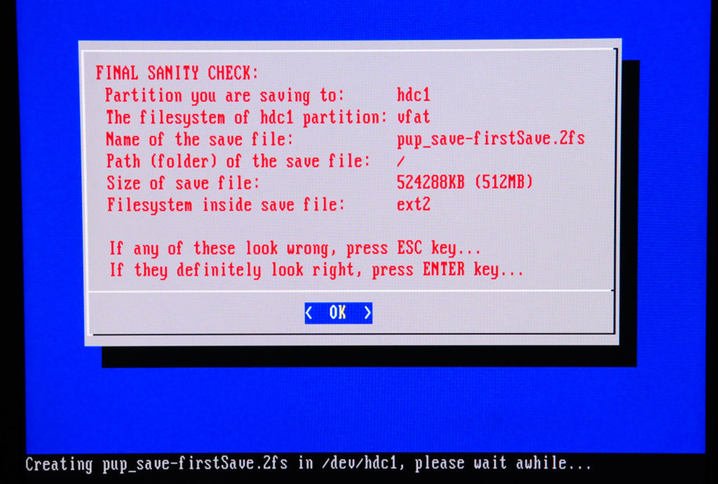 After booting the system and making some changes, I triggered a reboot and it asked if I wanted to save the settings. The size it suggested was 512MB, which seemed pretty large, but apparently what it wants to do is save a squashed file system. Later on I reinstalled Puppy on a 512MB card and reduced the size of the saved file to 64MB and it worked just fine. I’m not clear at this point what is actually saved in that file system. But for the photo-frame application, it works just fine with a 64MB saved size.
