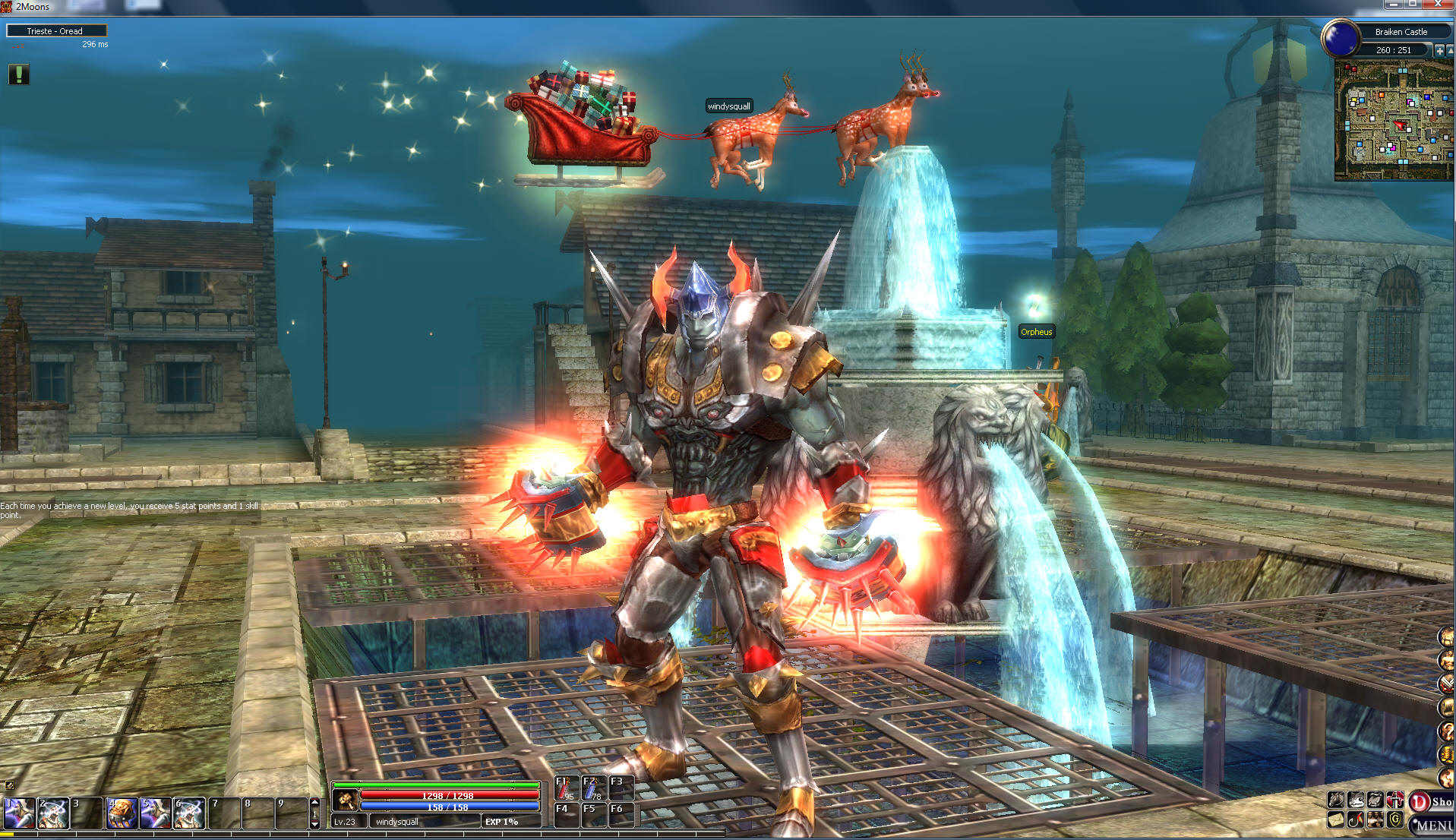 Greetings and Happy Holidays from Braiken Castle and surrounding territories. I am called Windysquall and I’m a Bagi Warrior. I’m sure you can look my race up on the 2Moons site, so I’ll move on with my Christmas letter. We are now six, we brothers and sisters in 2Moons. I’ve started the letters since I’d like to thank all my brothers and sisters for their great sacrifice to provide me with my new enhanced weapons.