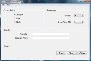I recently wrote a program to test my new computer. I wanted to test the wattage range and cooling of the new processor so needed a program that would keep all the cores of the processor busy. The Core i7-950 is a 4 core processor with Hyper-Threading which means that there are a max of 8 threads. Since AMD provides server processors with up to 12 threads so the program has a maximum number threads of 32. I use the HWMonitor program to monitor temperatures and wattage if your processor supports it.