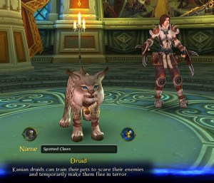 Pets are a little strange, at least at first glance. The pets help fight, but to restore their energy, they are sent into the astral plane by using a Dismiss command. It’s not clear at first that to get the pet back, you just use a pet attack skill. Odd. that’s about all I know about pets at this point in my career.