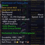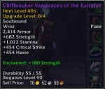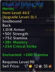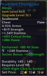 So after a little while I went back to the starting area in Kun-Lai Summit and enhanced my gear. The template was a maxed out Jewelcrafter and Enchanter and was given lots of mats. So I created some stones appropriate to the gear, and enchanted everything with the best enchantments that I could make.