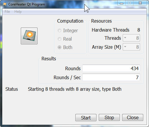This is a simple program that just creates threads for each processor and does simple calculations very quickly to heat up the CPU. Use the following settings: