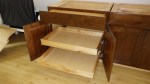 The cabinets have arrived for the sideboard. I just need to assemble them. Bolt the cabinets together, install the Alder back splash, toe kick, and put the granite tops on top. Woops. The drawer fronts are wrong. I ordered “Five Panel” drawer fronts. They should look like the doors with stiles around the edges and panels in the center. Oh well, the right ones are on order.