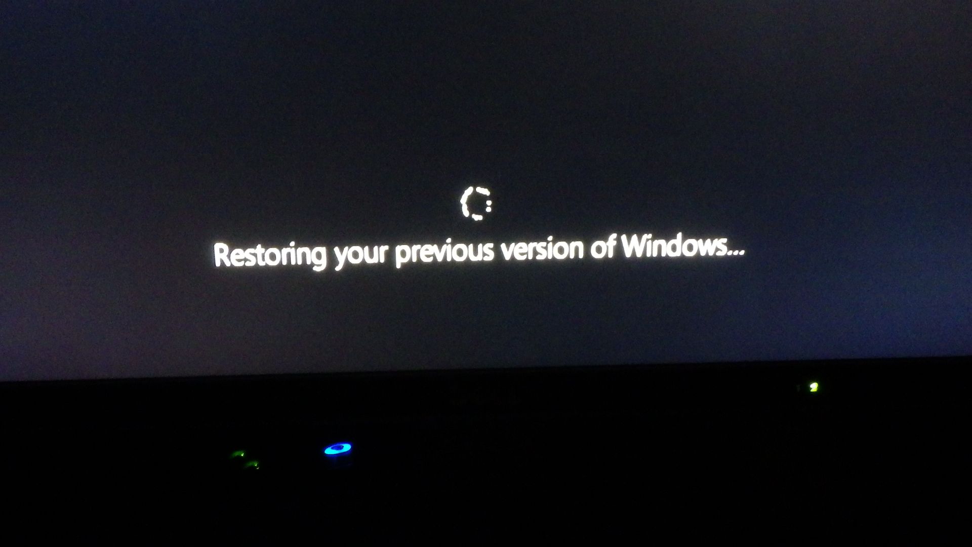 The forced reboot triggered a restore of the previous windows and all was well back on Windows 7 just as it had been.