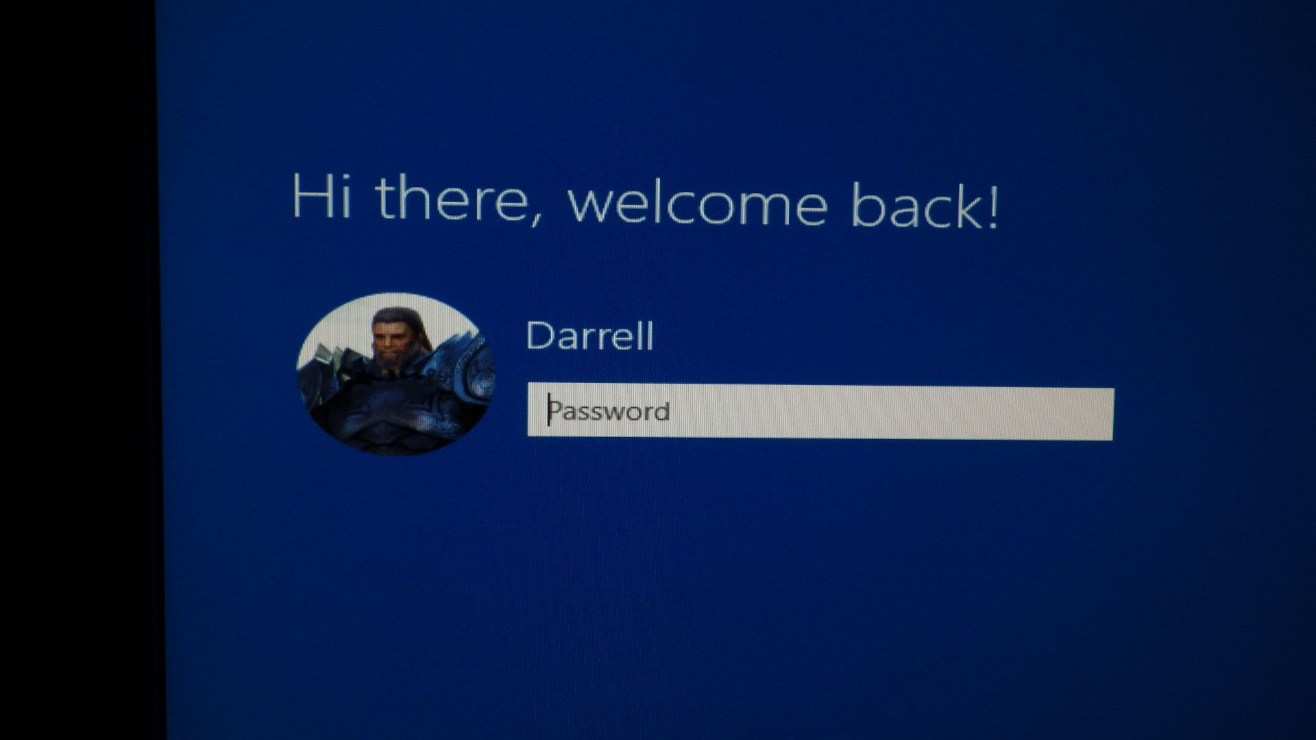 This is the first log-in screen for Windows 10. Installation is not yet complete, but the system is running.