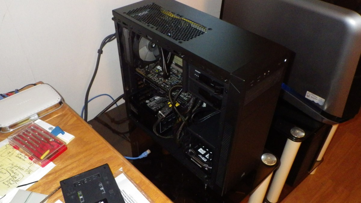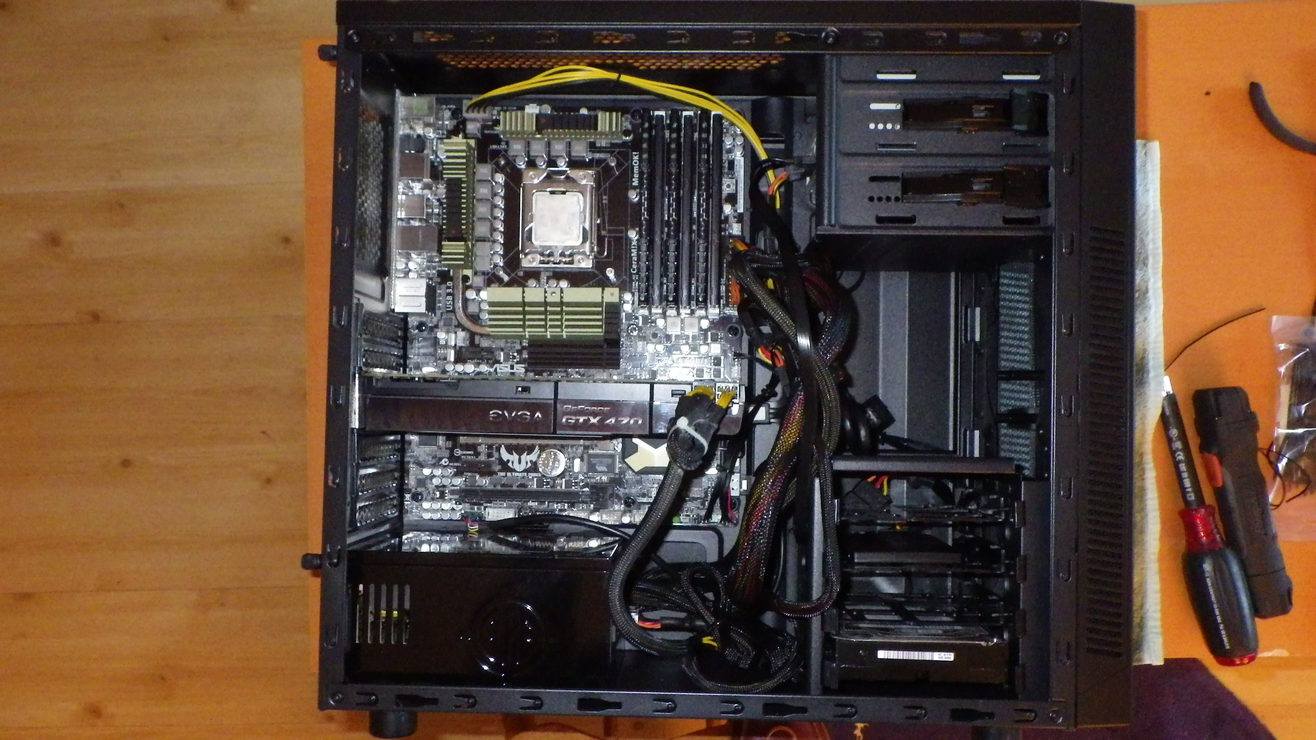 Motherboard, SSD, HD, Graphics Card and DVD burner. And I’ll move the power supply.