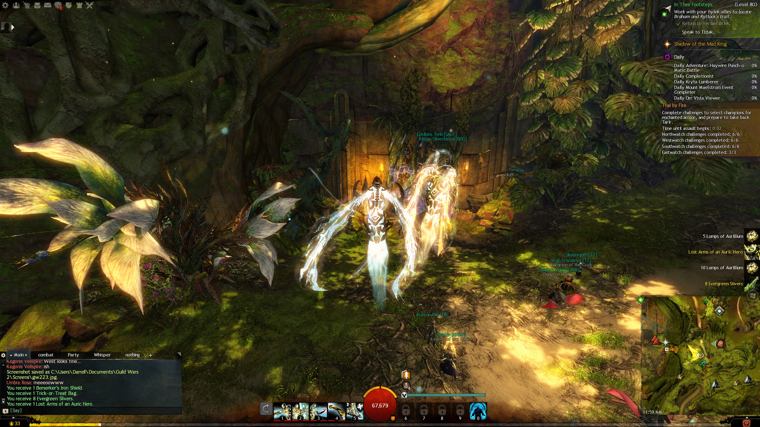 I’ve stayed away from HoT for a while. I’ve been just doing map completions on my Alts and Halloween, which is fun too. But I do have a goal of completing the Revenant Mistward Armor. That seemed out of reach a while ago, but I’m very close with only one piece to go, the coat. I don’t need the scrim [head piece] since I have that skin from creating my Revenant.First, let’s review Halloween, since it’s just wrapping up.