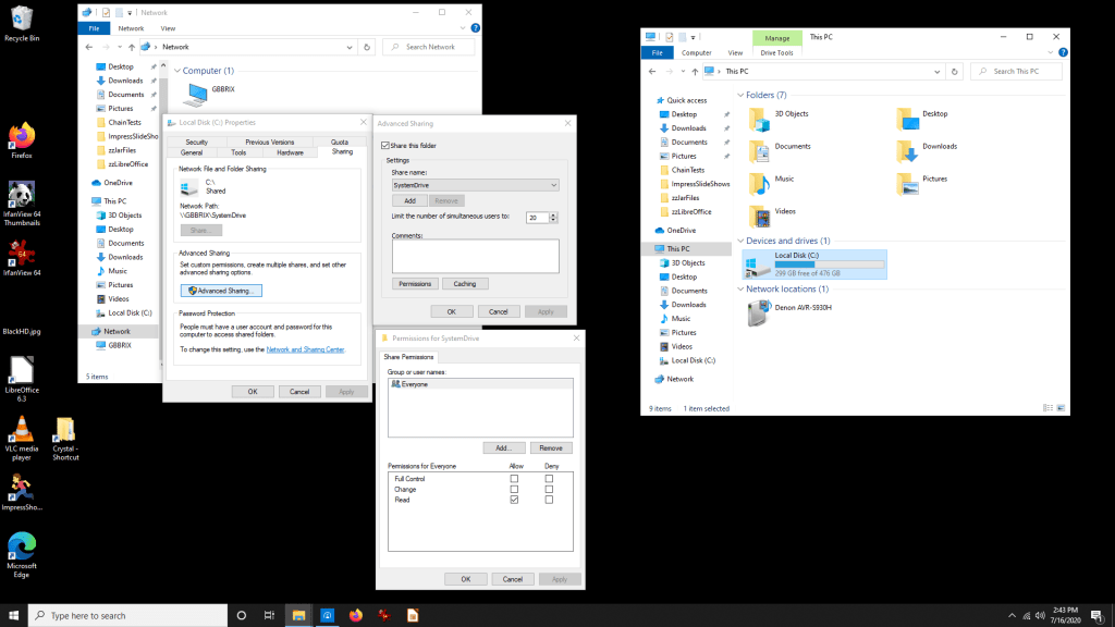 I have had a little Gigabyte Brix computer for a couple of years now. I would like to set it up to play audio books so I moved it and hooked it to another monitor. I thought that a few weeks ago, file sharing was working fine, but now it’s not. I just need to copy the audio books to it so I can play them. So Crystal can see the GBBrix shares and read files from that system. But the GBBrix system cannot see any other systems on the network and so cannot copy files from them. All the shares are set “Everyone can read”.