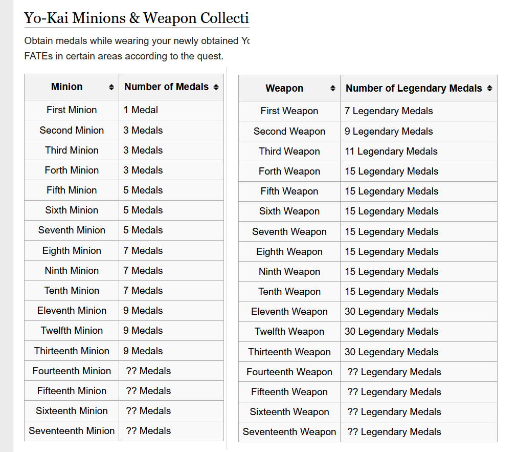 The left picture is some information about Yo-Kai Watch Events from previous events about metals required for minions and weapons. When I saw that I gave up after a couple of minions. But the real info is in the other two pictures from this updated website.