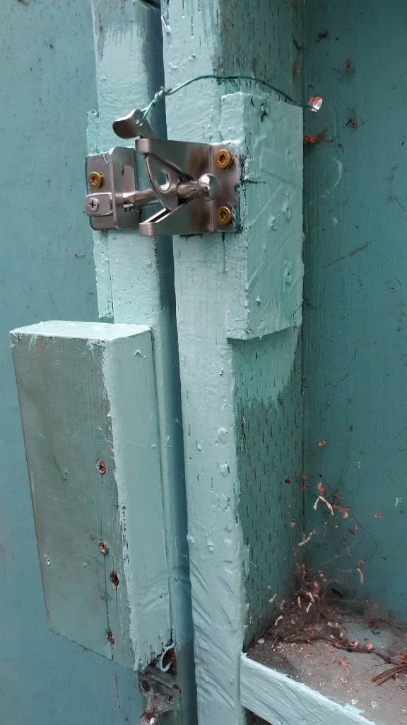 Had to widen the wood a little. The latch parts were wider than 1 1/2 inches [2 x 4] so I added some shims. I’ll paint these soon.