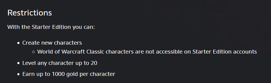 Update: The starter edition limitations have changed as of the Pre-Patch.