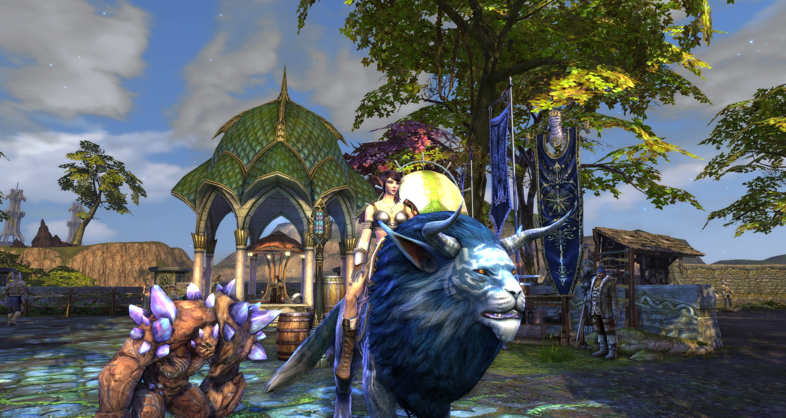 Rift does not provide flying mounts. But riding mounts are available as soon as you leave the starting zone. The horned lion above is an early mount in the Rift game. Check my review after playing for a while.
