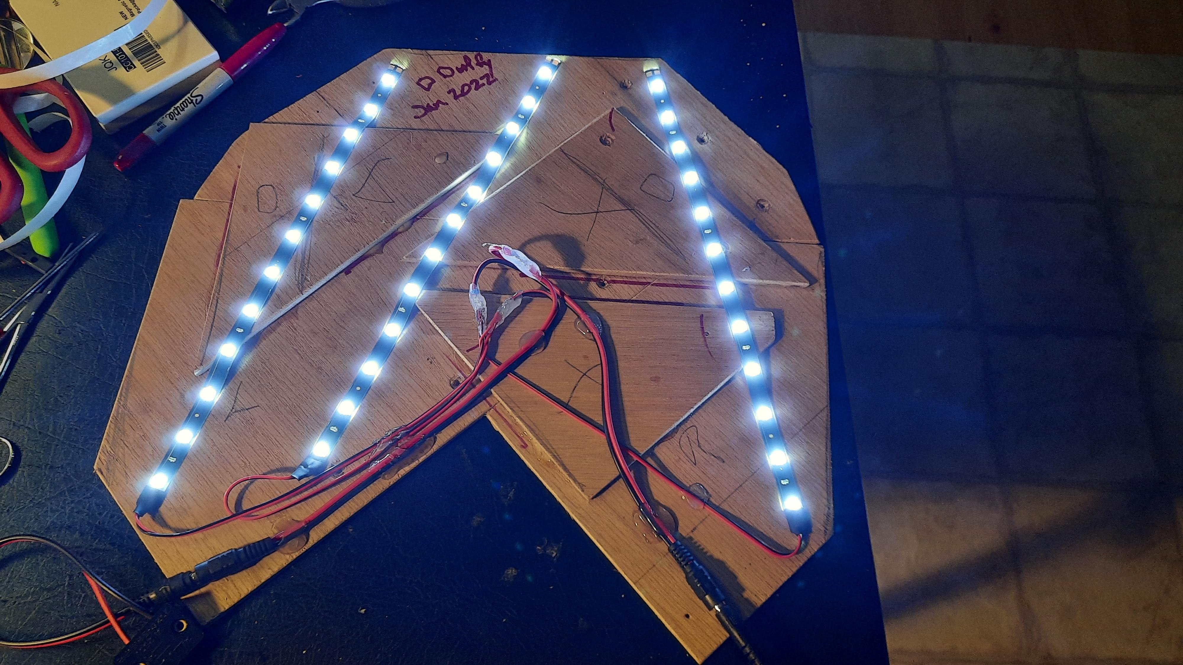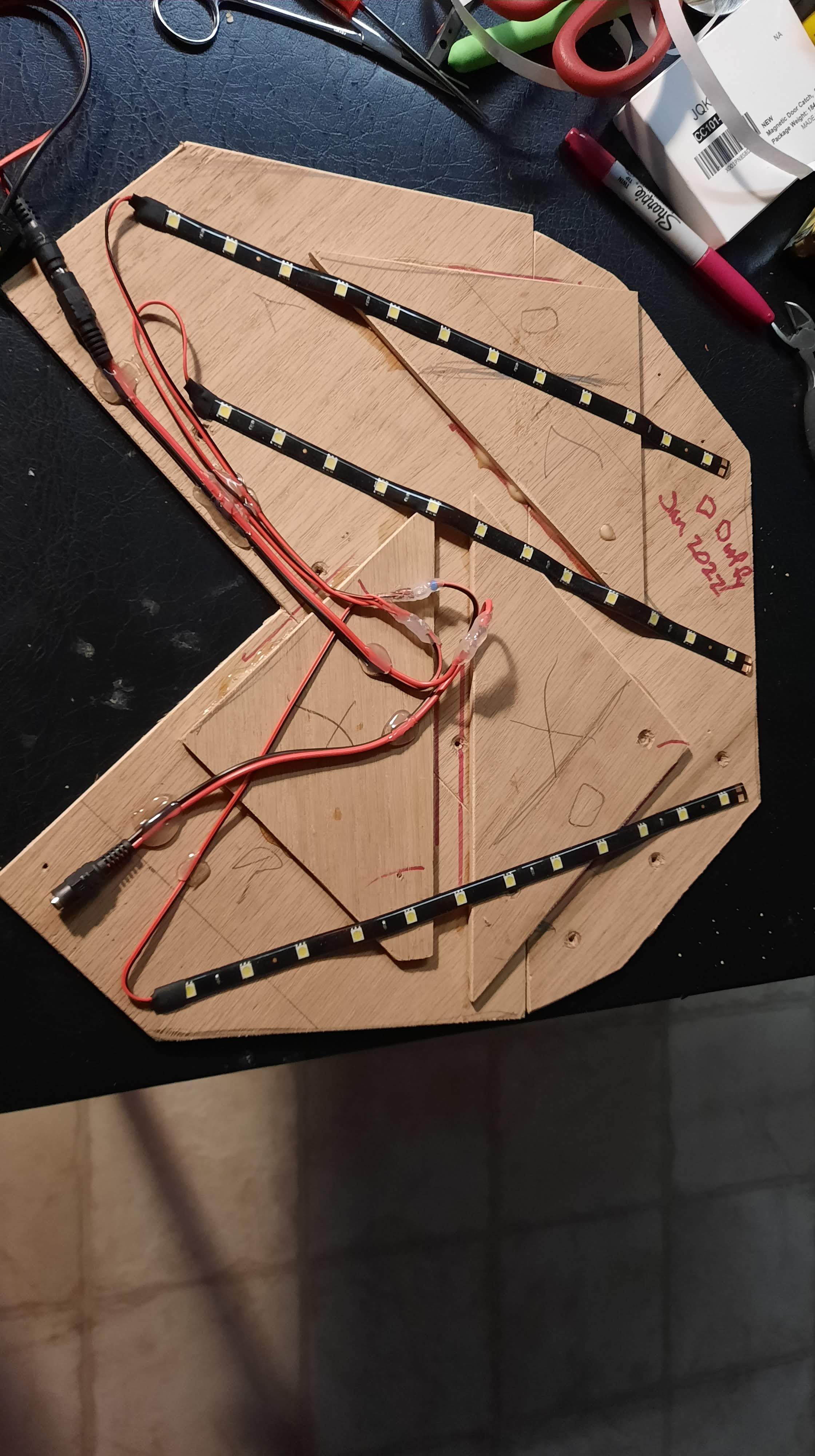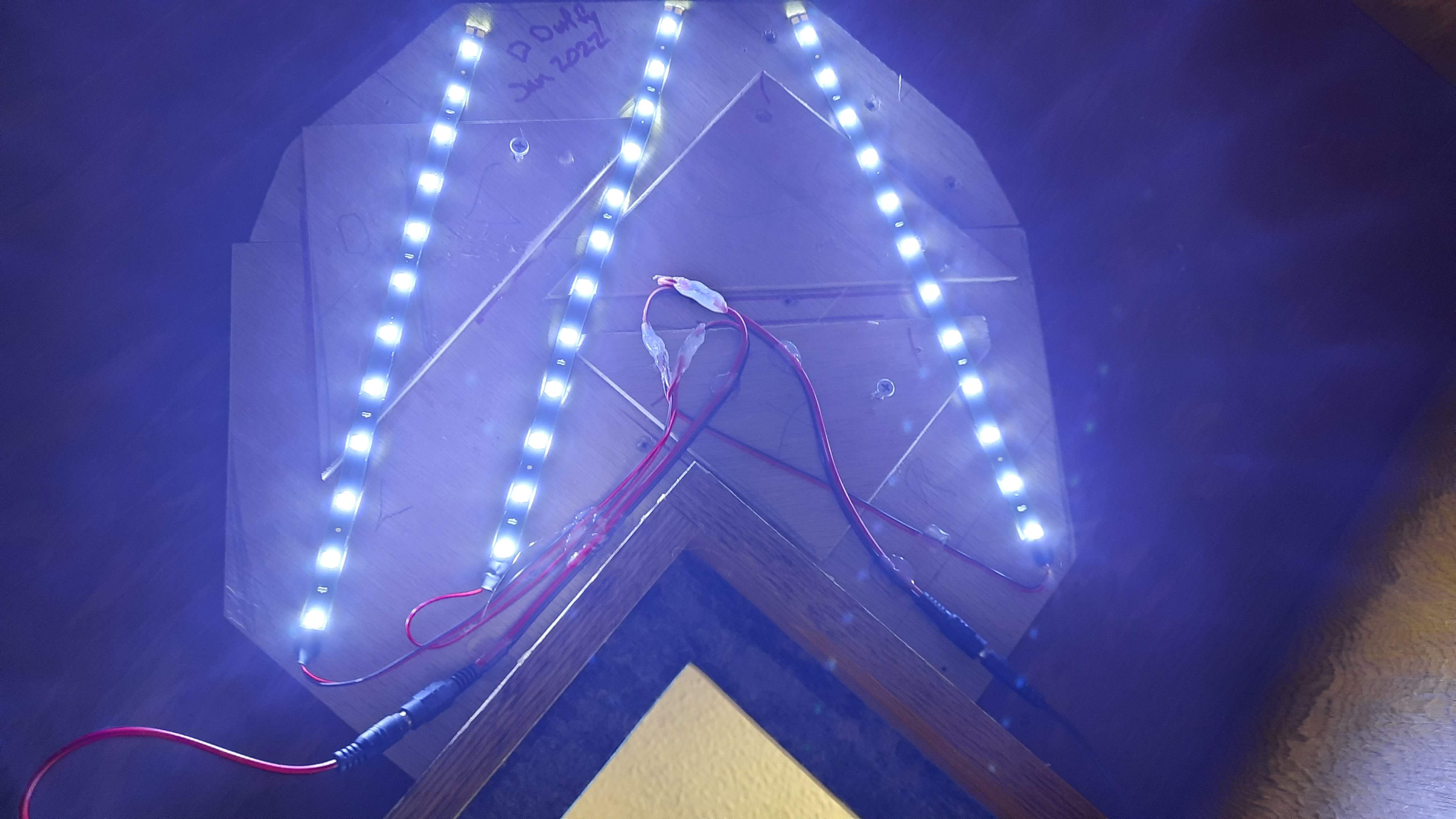 Now I needed a board to mount the lights on to put them at the top of the cabinet.