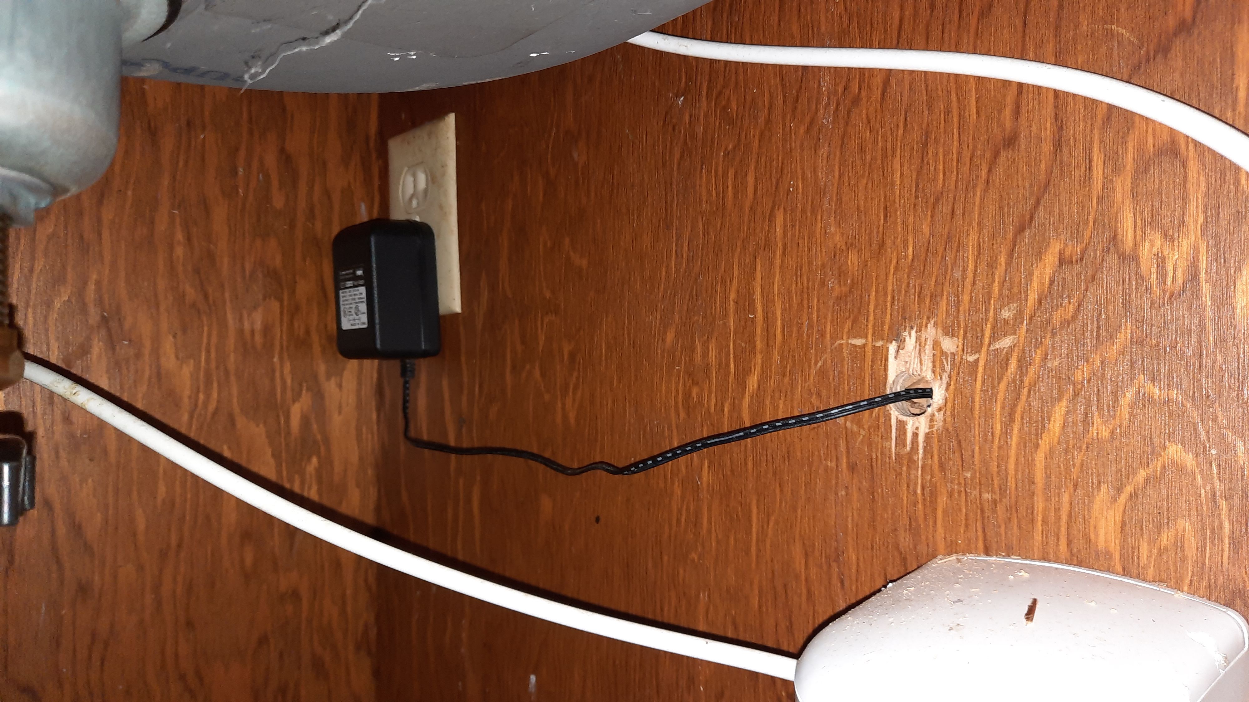 So I got some LED light strips, from the auto section, a cabinet switch and a magnetic cabinet closure. The lights are designed to be mounted under cars. Six strips, each a foot long, running on 12 volts for $10. I have a bunch of little power supplies lying around. After running for 1/2 an hour, this supply is barely warm running three light strips.