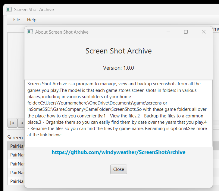The code for the app is here: https://github.com/windyweather/ScreenShotArchive Here is a picture and some code snippets of relevant areas.
