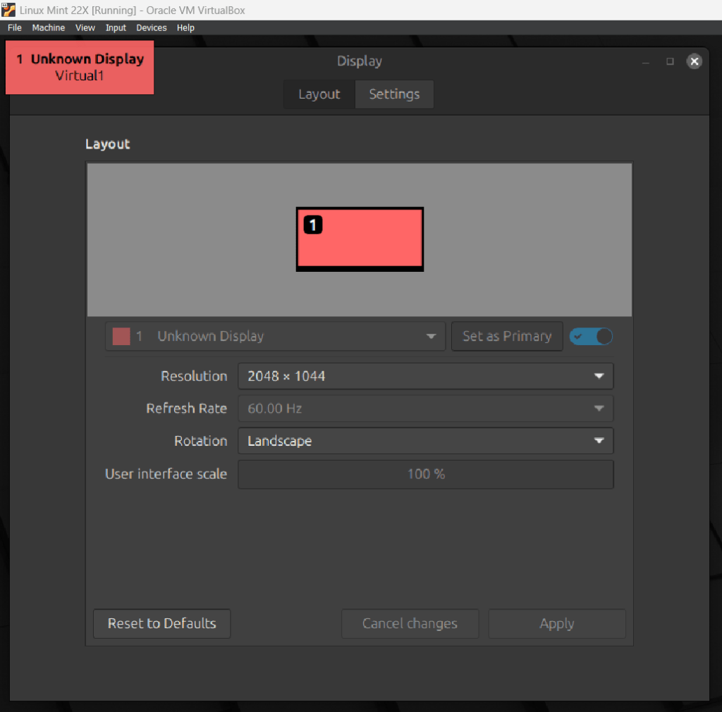 The Linux Mint 22 system has had the VirtualBox Guest Extensions installed. Is this the problem? Do these cause the failure of the Linux Mint window to scale to match the monitor? The Linux Mint 21.2 VM has an older version of the Guest Extensions [ and I don’t want to mess with that to make it blurry since I don’t know how to back out the guest extensions.]
