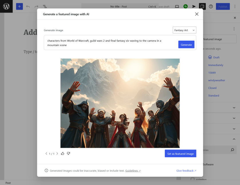 But when I came here to word press to add a banner, it asked if I wanted to use AI, and I just did this: