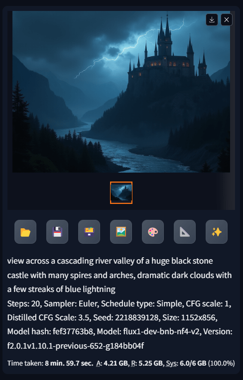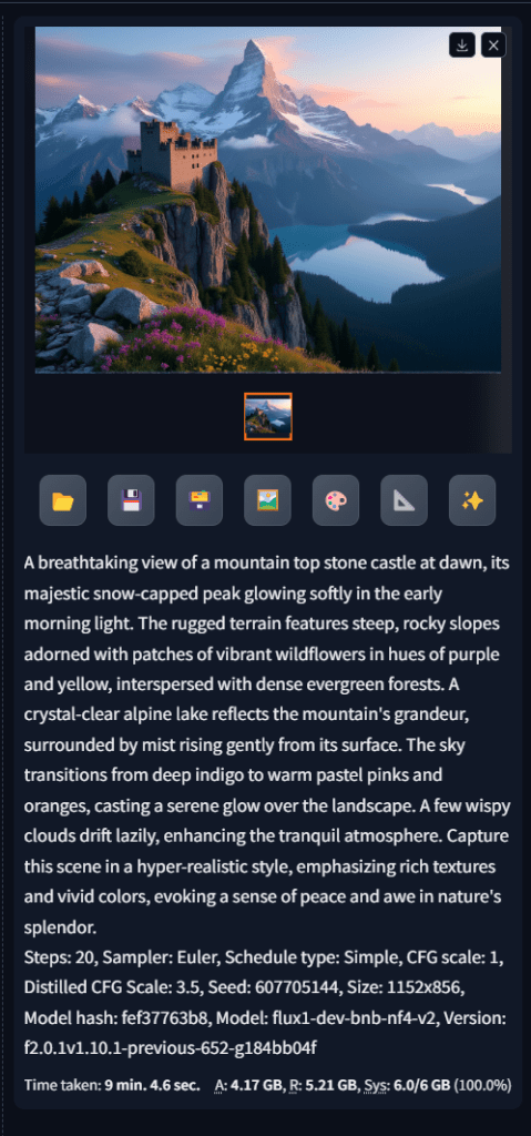 But then I had the bright idea of looking in google for Flux prompts. I found one of Mount Rainier that I modified to add a castle.