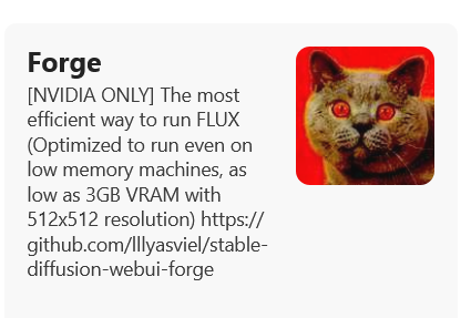 I tried a few things that failed, but finally found that I could run Flux. On Pinokio it is called Forge: