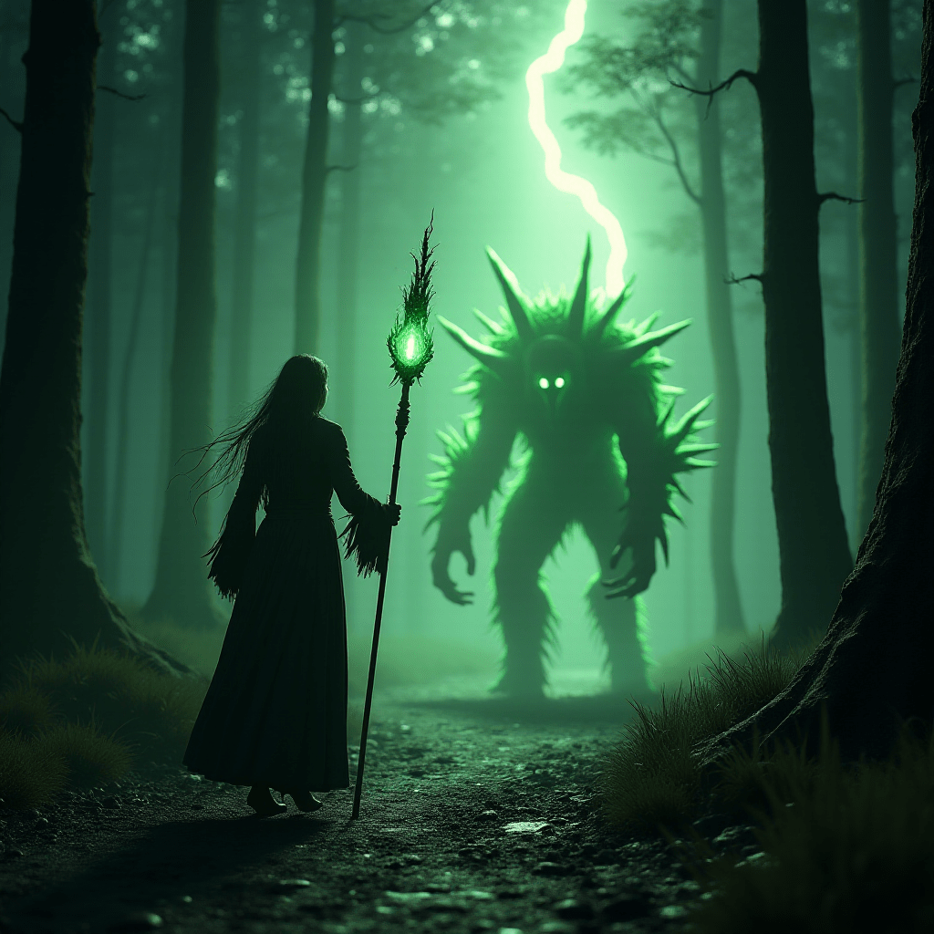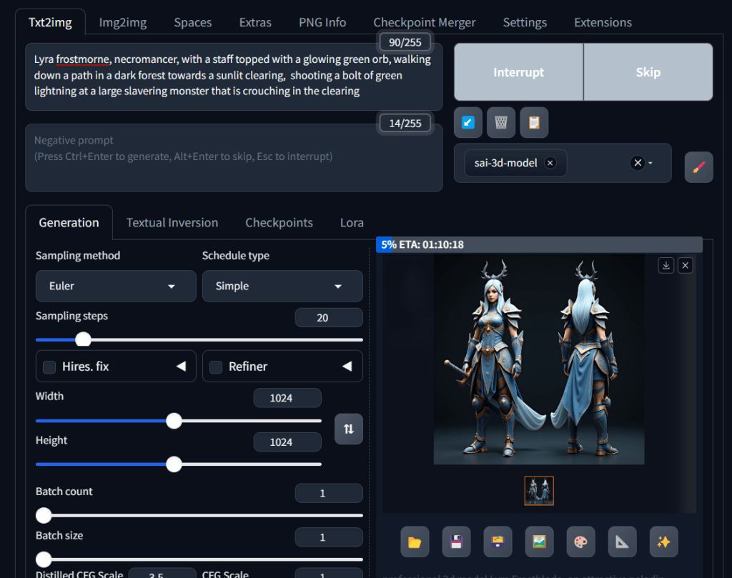 I tried to add a description of a scene and I got what I asked for. Mostly. Directing the lighting to the monster didn’t really happen. Not a rousing success, but still, some progress.