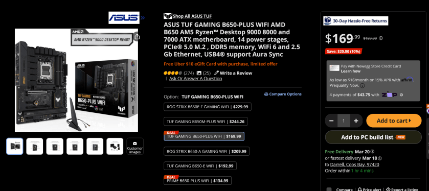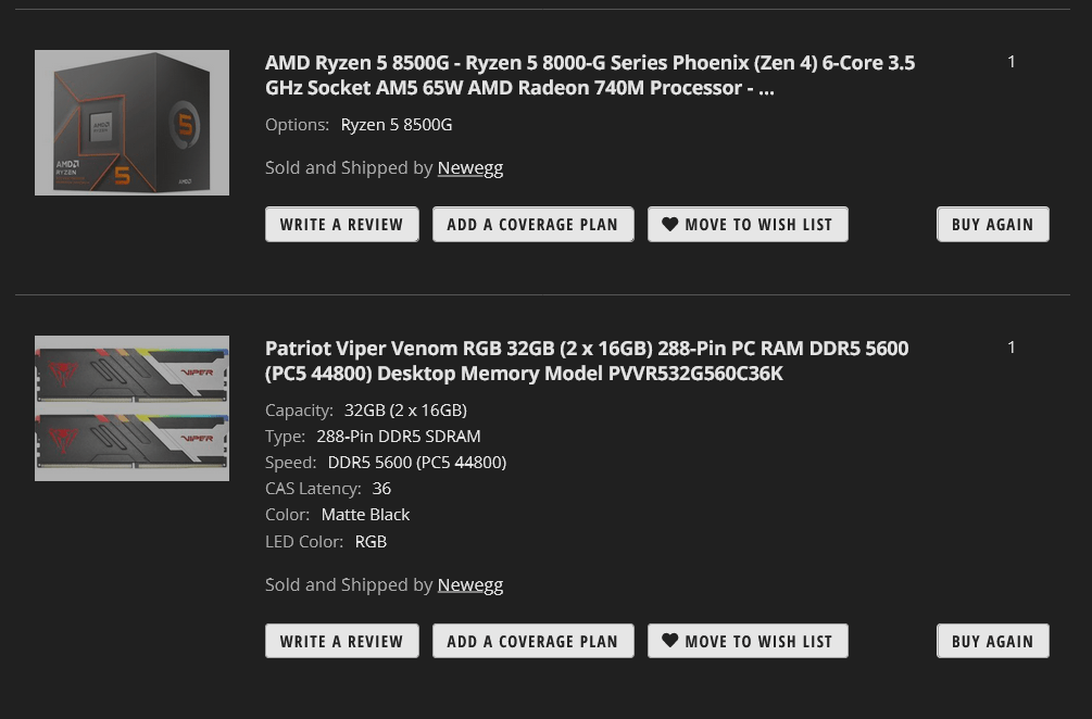 So back to this system. The box for the motherboard said it supports Ryzen 9000 systems. So after some trepidation, I checked newegg’s website again and found that the description clearly shows Ryzen 8000 as well.