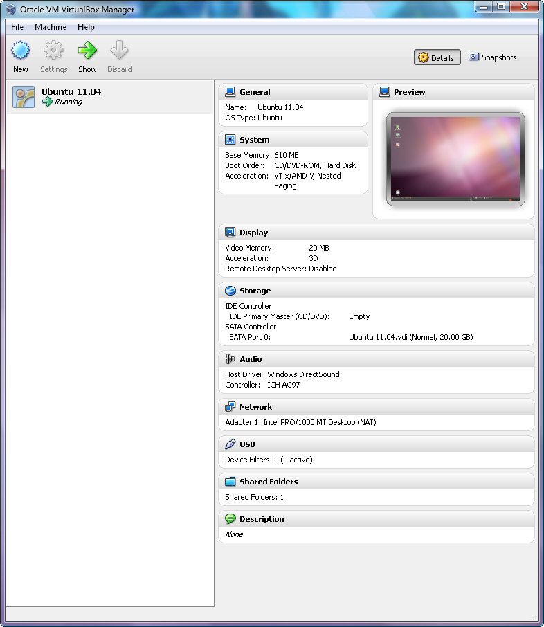 VirtualBox Control Panel